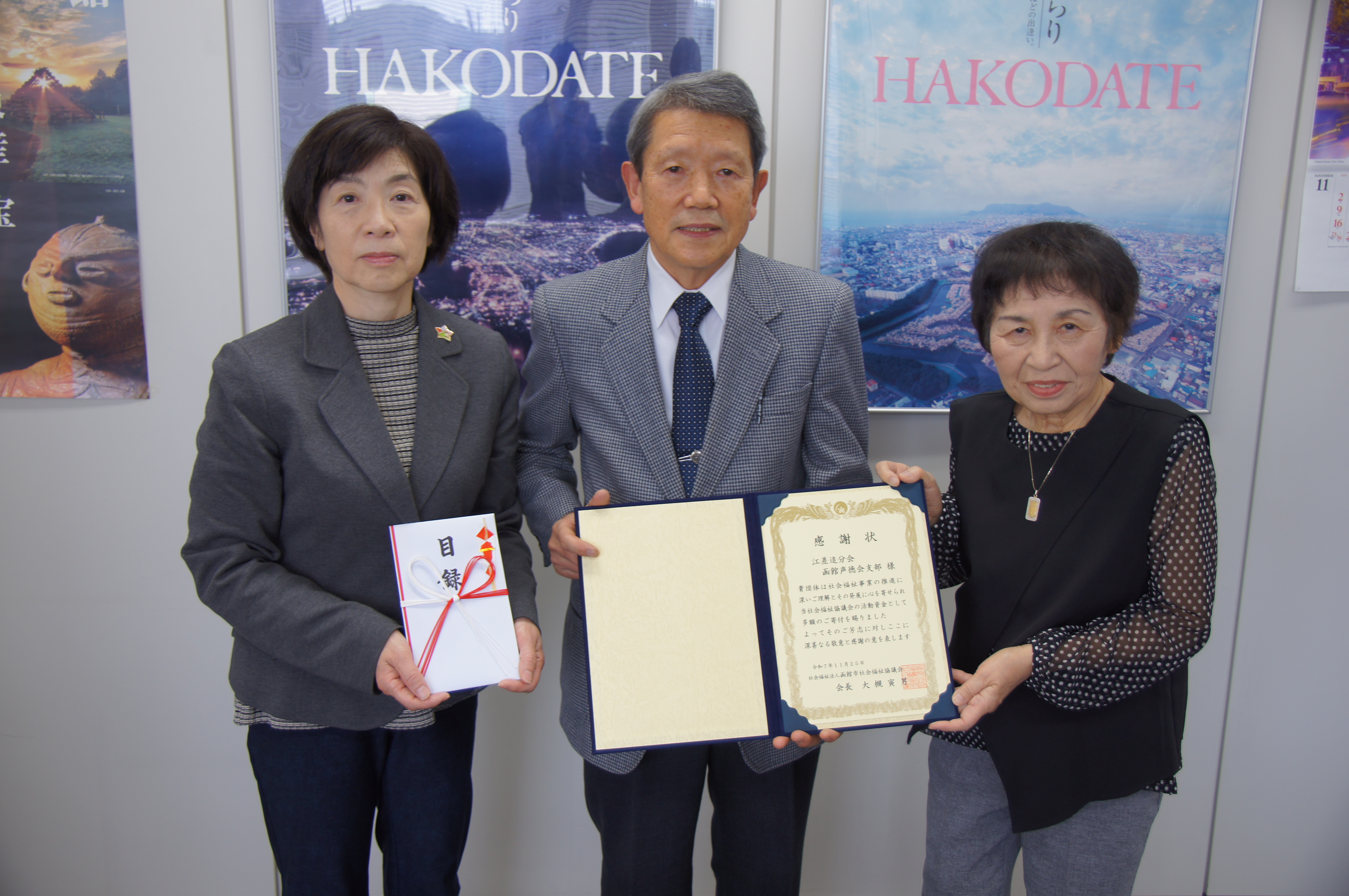 令和7年11月25日、江差追分会函館声徳会支部様からご寄付をいただきました。 江差追分会函館声徳会支部様は、平成7年からご寄付いただいており28回目となり、市内各所で行われたチャリティーコンサートなどでの投げ銭となっています。 いただいたご寄付は函館の地域福祉推進のため大切に使わせていただきます。 この度は温かい善意のご寄付をありがとうございました。