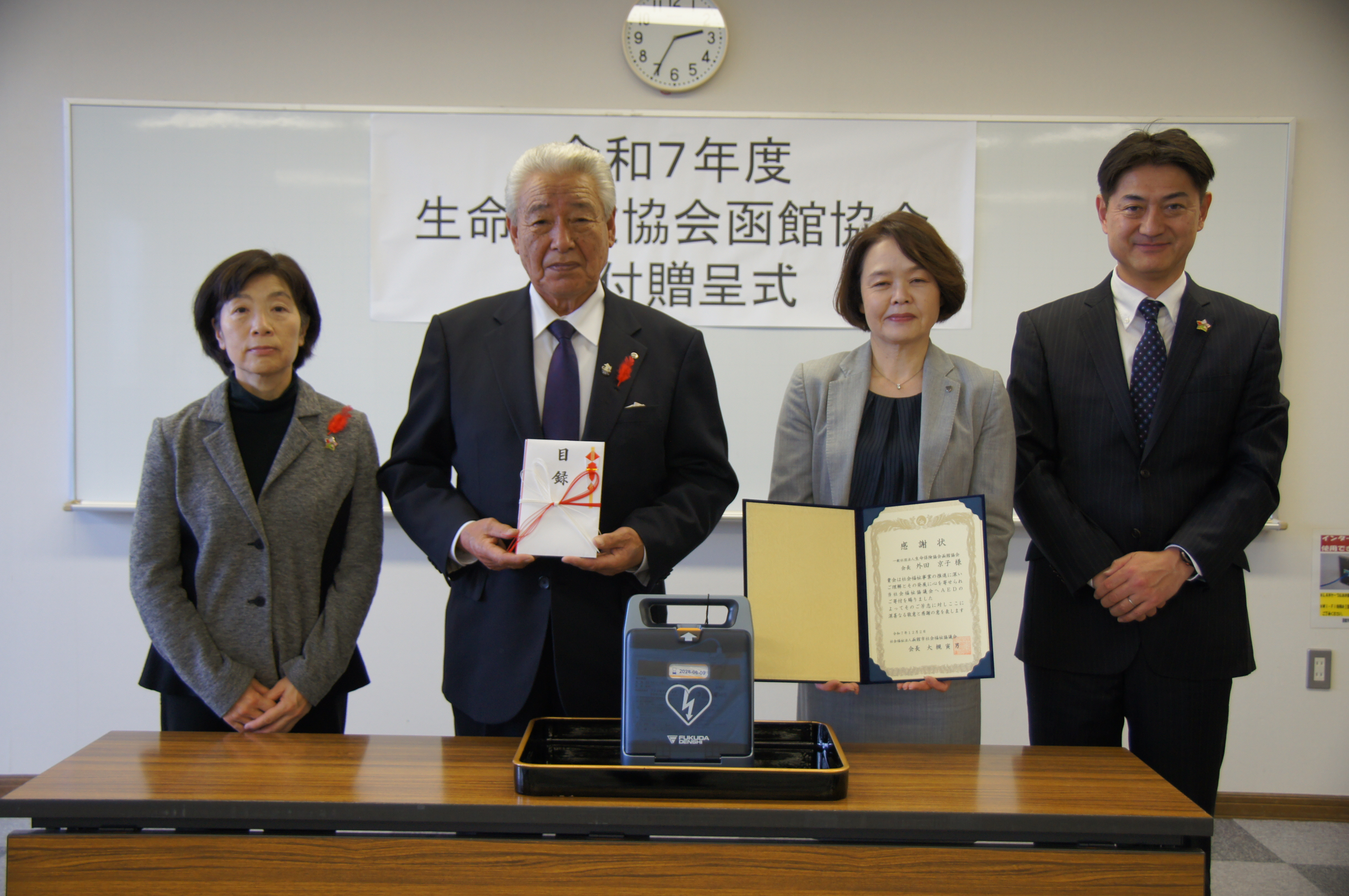 12月2日、一般社団法人生命保険協会函館協会様より、AEDのご寄付をいただきました。
