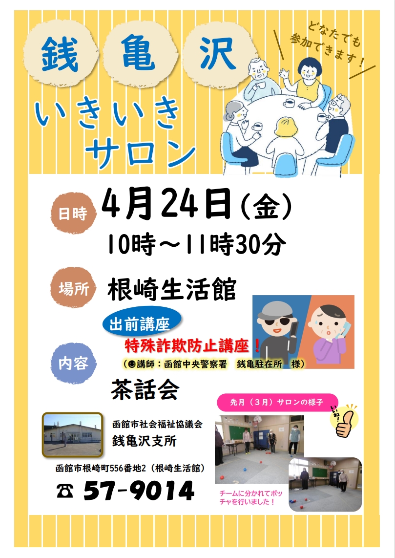 4月銭亀沢いきいきサロン 4月24 日(金) 開催!